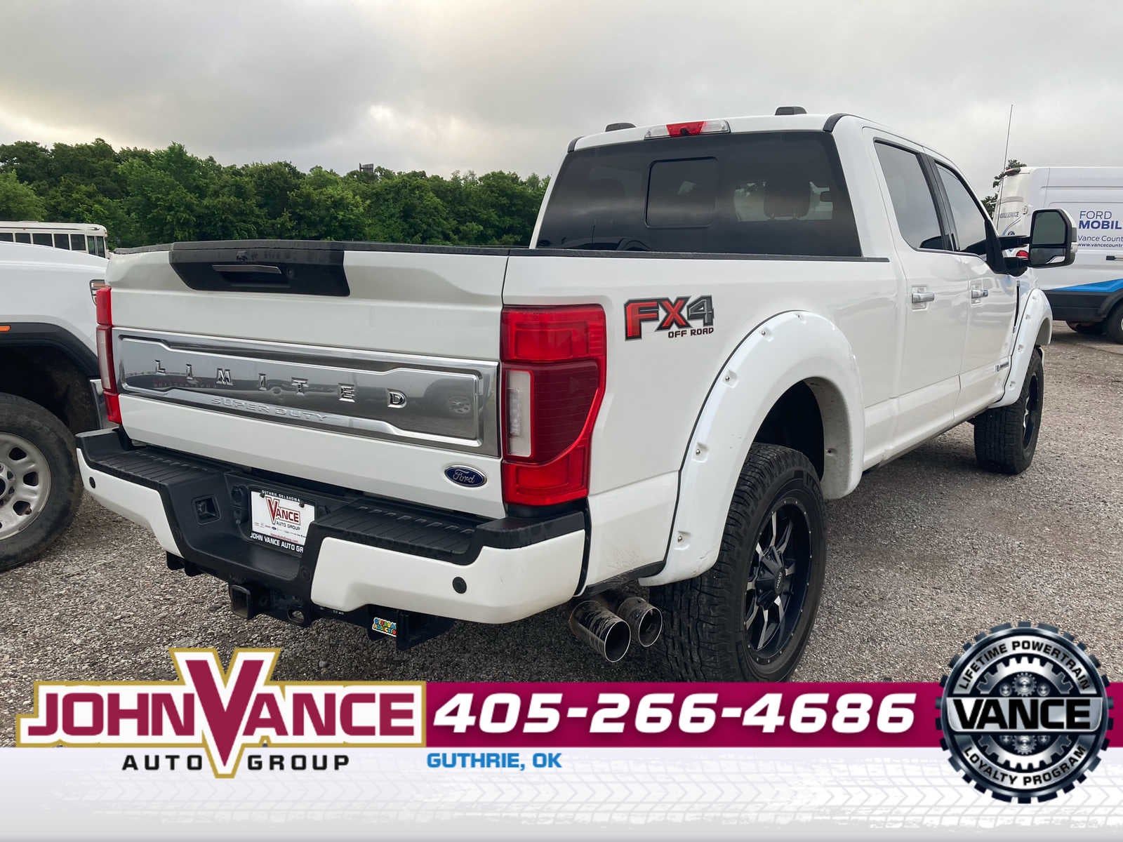 ELECTRONIC-LOCKING W/3.31 AXLE RATIO, ENGINE: 6.7L 4V OHV POWER STROKE V8 TURBO DIESEL B20 manual push-button engine-exhaust braking and intelligent oil-life monitor (STD), TRANSMISSION: TORQSHIFT 10-SPEED AUTOMATIC SelectShift and selectable drive modes: normal, tow/haul, eco, deep sand/snow and slippery (STD). Ford Limited with Star White Metallic Tri-Coat exterior and Highland Tan interior features a 8 Cylinder Engine with 475 HP at 2600 RPM*.