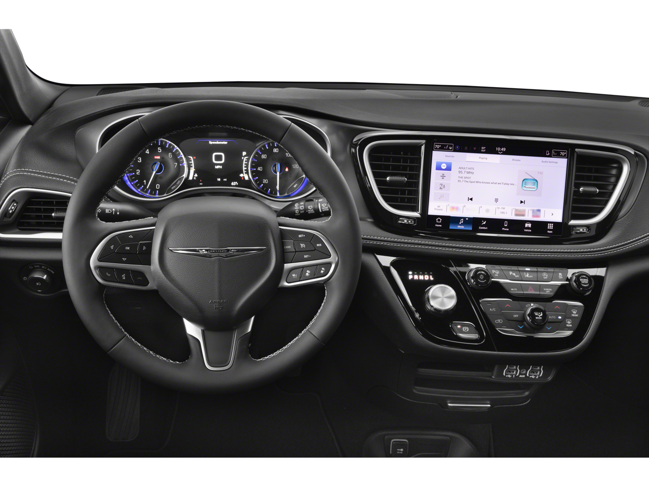 SAFETY SPHERE 360 Surround View Camera System, Parallel & Perpendicular Park Assist w/Stop, ParkSense Front/Rear Park Assist w/Stop, SIRIUSXM GUARDIAN - INCLUDED TRIAL (B) Global Telematics Box Module (TBM), TRANSMISSION: 9-SPEED 948TE AUTOMATIC (STD), ENGINE: 3.6L V6 24V VVT UPG I W/ESS (STD). Chrysler Select with Bright White Clearcoat exterior and Black interior features a V6 Cylinder Engine with 287 HP at 6400 RPM*.
