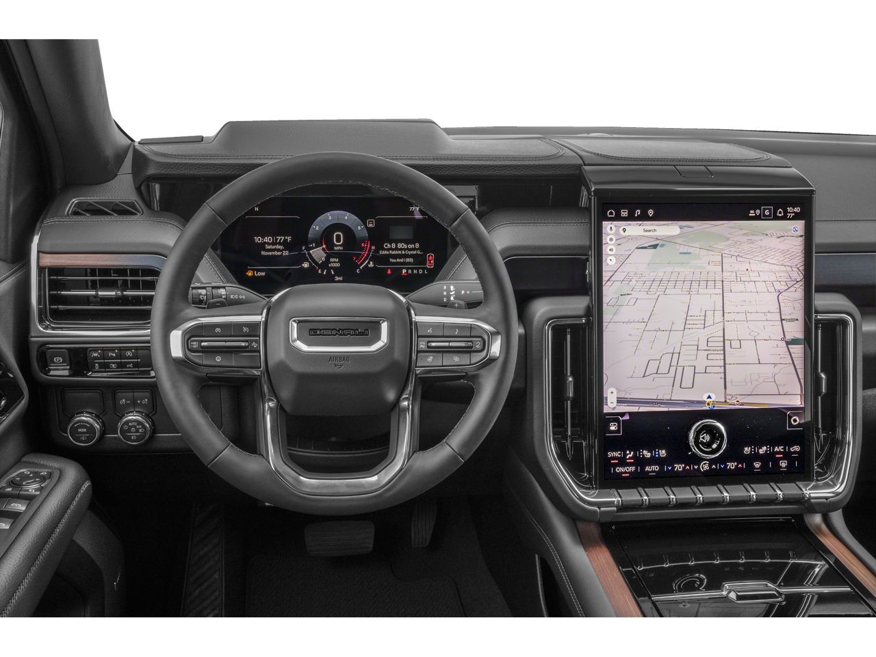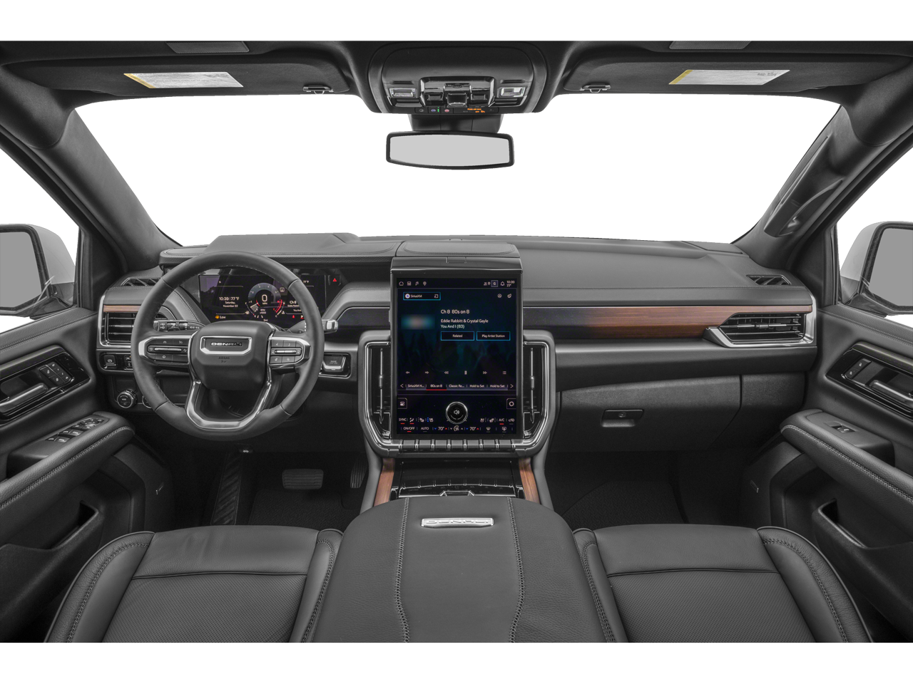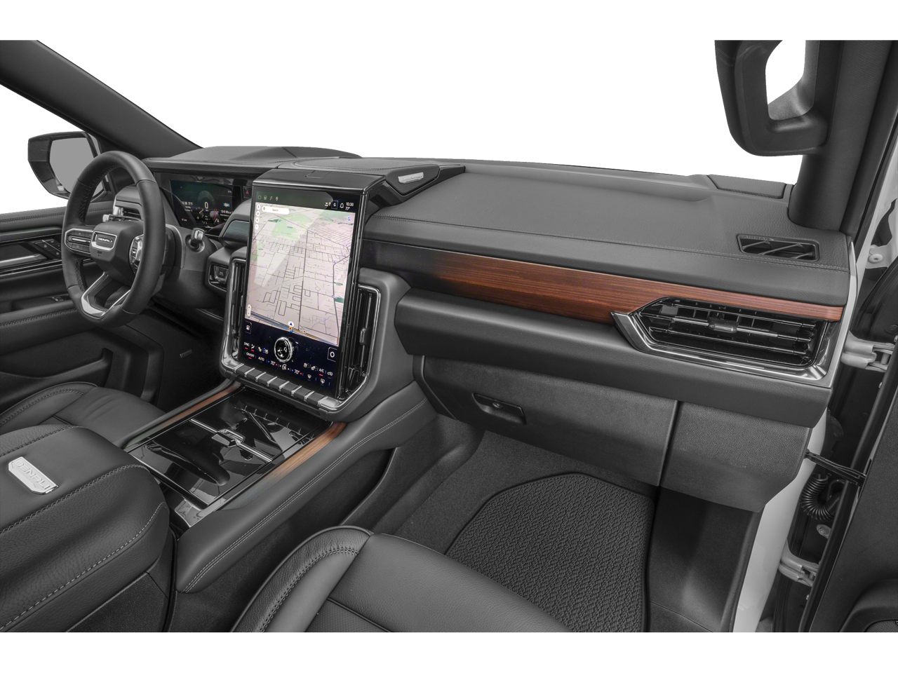 DENALI RESERVE PACKAGE includes (CWN) Advanced Technology Package content, (ZM1) Enhanced Trailering Technology Package content, (C3U) Panoramic power sunroof, (B3L) power-retractable assist steps with perimeter lighting, (SMI) 22 6-spoke Chrome wheels and (SFE) wheel locks, LPO, ADVANCED TECHNOLOGY PACKAGE includes (UKL) Super Cruise, (DRZ) Rear Camera Mirror, (UW9) Rear Seat Media System, (NWM) Advanced Security Package content and (NHT) Max Trailering Package, WHEELS, 22 X 9 (55.9 CM X 22.9 CM) ULTRA-BRIGHT MACHINED and painted Midnight Silver with laser etched logo Includes (SFE) wheel locks, LPO. PREMIUM CAPABILITY PACKAGE WITH ACTIVE RESPONSE 4WD includes (F47) Air Ride Adaptive suspension and (G96) electronic limited-slip differential, SUSPENSION, AIR RIDE ADAPTIVE, LPO, BLACK ROOF RACK CROSS RAILS (dealer-installed), TRANSMISSION, 10-SPEED AUTOMATIC electronically controlled with overdrive, includes Traction Select System including tow/haul, MAX TRAILERING PACKAGE includes (UKW) Blind Zone Steering Assist with Trailering, (PZ8) Hitch View, (UET) Smart Trailer Integration Indicator, (JL1) integrated trailer brake controller and (V03) extra capacity cooling system Also includes (NQH) 2-speed active transfer case and (JHD) Hill Descent Control on 4WD models. ADVANCED SECURITY PACKAGE includes (UTR) self-powered horn, (UTV) interior movement sensors, (UTU) vehicle inclination sensors, (UTW) glass break sensors in rear quarter glass and liftgate window and door and liftgate lock shields, AUDIO SYSTEM, 16.8 DIAGONAL PREMIUM GMC INFOTAINMENT SYSTEM with high contrast display and local backlight dimming, with Google built-in compatibility, including navigation capability, color touch-screen, multi-touch display, connected apps, personalized profiles for each drivers settings, and Natural Voice Recognition (STD), ENGINE, DURAMAX 3.0L TURBO-DIESEL (305 hp [227 kW] @ 3750 rpm, 495 lb-ft of torque [671 Nm] @ 2750 rpm). GMC Denali with Downpour Metallic exterior and Jet Black interior features a Straight 6 Cylinder Engine with 305 HP at 3750 RPM*.